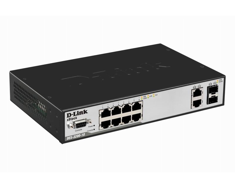 DES-3200 Series is a member of D-Link?s Layer 2 xStack Managed Switch family designed for the Metro ETTX and FTTX market. The DES-3200 Series provides 8/16/24 100Mbps Fast Ethernet connections plus 2/4 combo Gigabit/SFP ports. The DES-3200-10/18 comes with a 9-inch desktop size and fanless feature which is suitable for ETTH deployment. The DES-3200- 28/28F provides copper or fiber connections on Fast Ethernet, an advantage in different Metro Ethernet applications. It also offers the beneficial design of 4 Gigabit/SFP Combo ports which provide up to 4Gbps uplink bandwidth or dual Ethernet ring topology support. The DES-3200-28F facilitates up to 20 km connectivity for Metro Ethernet applications.