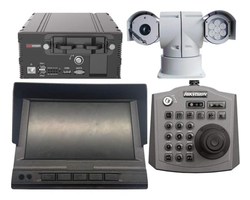 Mobil biztonsági állomás: 4+1 csatornás IP mobil DVR+1TB HDD, kezelő, kijelző, forgózsámolyos kamera
