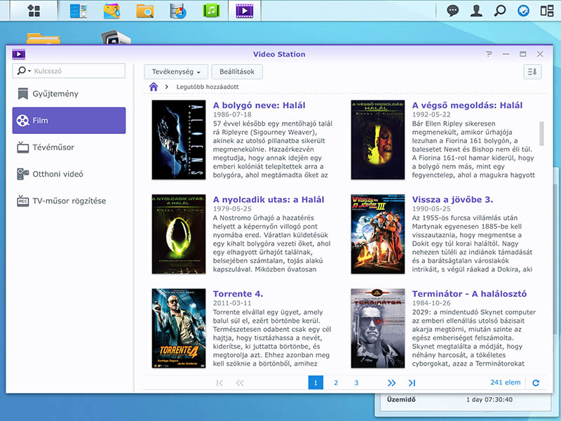 - Video Station ? filmjeink metaadatainak (borítógrafika, történet, szereplők, stb.) automatikus letöltése, USB-s DVB-T tunerek támogatása, felvételkészítés és tévénézés webböngészőben, adás streamelése.