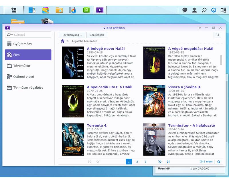 - Video Station ? filmjeink metaadatainak (borítógrafika, történet, szereplők, stb.) automatikus letöltése, USB-s DVB-T tunerek támogatása, felvételkészítés és tévénézés webböngészőben, adás streamelése.